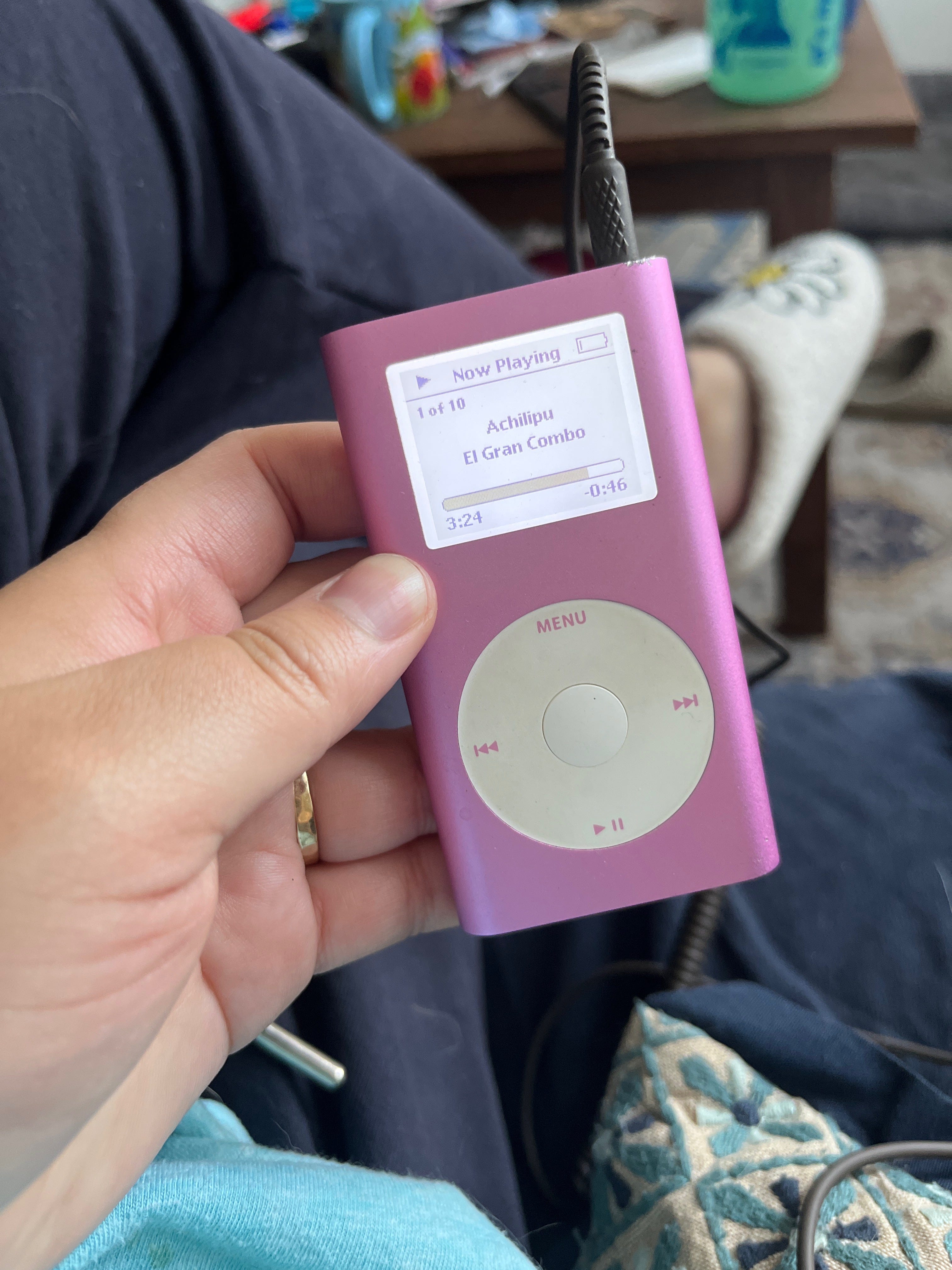 Now imagine my surprise when my old ass is scrolling on Tiktok to find one of the youths posting a video about their favorite single use devices, and a white iPod classic pops up on the screen. Reader, when I tell you I almost shouted. The kids are bringing back the iPods! Then, another video entitled “iPod classic decoration.” I couldn’t believe it, and honestly was a little jealous that I never thought to put stickers and gems on my iPod to personalize it a bit. Another one reading: “Redo my iPod nano with me,” with a voiceover of a young girl announcing that she was adding music to it so she can take it on the go (then hilariously and illegally ripped hundreds of songs from Spotify). Another one: the narrator tells us that he actually modified his iPod to have a terabyte of storage and a USB-C port for charging (!!!). So, I did what any rational person in their 30s does and texted their parents immediately, “Hey, do you still have my pink iPod Mini?” and low and behold they did. Within the week, she was arriving in my mailbox in all her pink glory. Almost 20 years later and she’s still working! The battery doesn’t hold the best charge, but alas, I was thrilled. This then prompted me to Google “How to turn on an iPod,” which was truly humbling, followed by “How to turn music down iPod” — we were back in business.